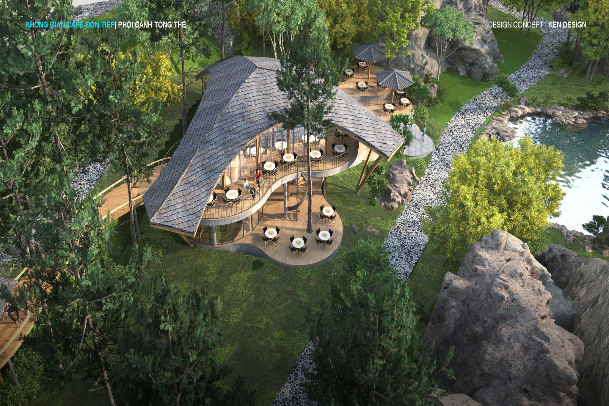 Thiết kế quán cafe trong tổ hợp khu du lịch sinh thái là nơi dừng chân của du khách sau khoảng thời gian vui chơi đã thấm mệt. Với thiết kế phong cách phóng khoáng, đưa thiên nhiên vào trong thiết kế,....